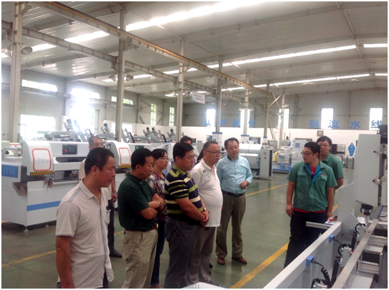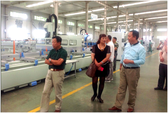 在派克機器總經理王永暉的陪同下,俊強五金一行,參觀了派克機器的門窗幕墻設備裝配中心及中空玻璃機器裝配中心,車間管理人員詳細介紹了派克機器裝配生產工藝及定置化管理的經驗和方法,就如何貫徹執行“7S”管理做了重點講解。門窗幕墻加工中心、鋸切中心、玻切流水線、三軸任意角切割鋸的演示令參觀者贊不絕口。
